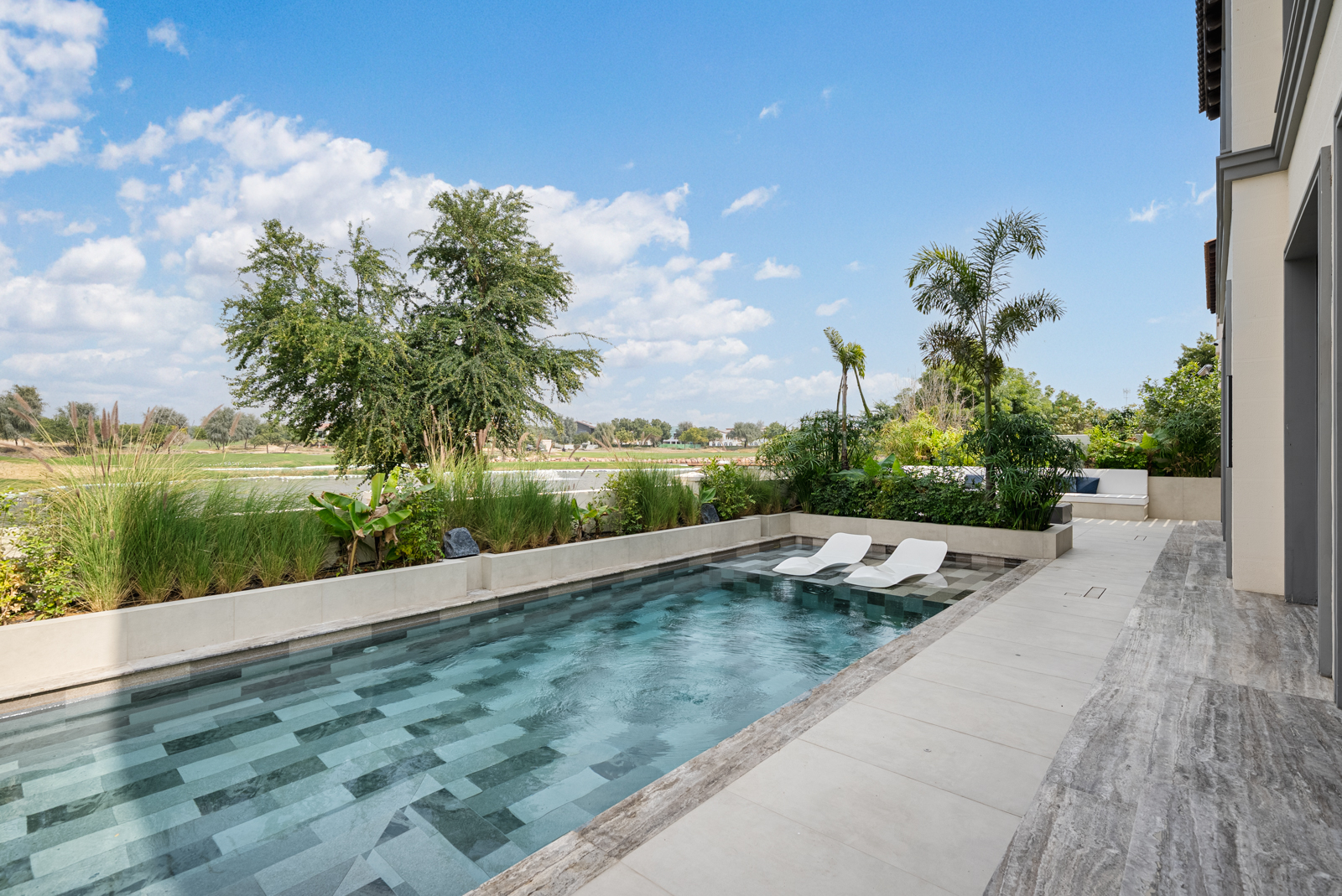 Step outside to an infinity-edge pool framed by lush landscaping and multiple alfresco entertaining areas, including a BBQ terrace overlooking the fairway.